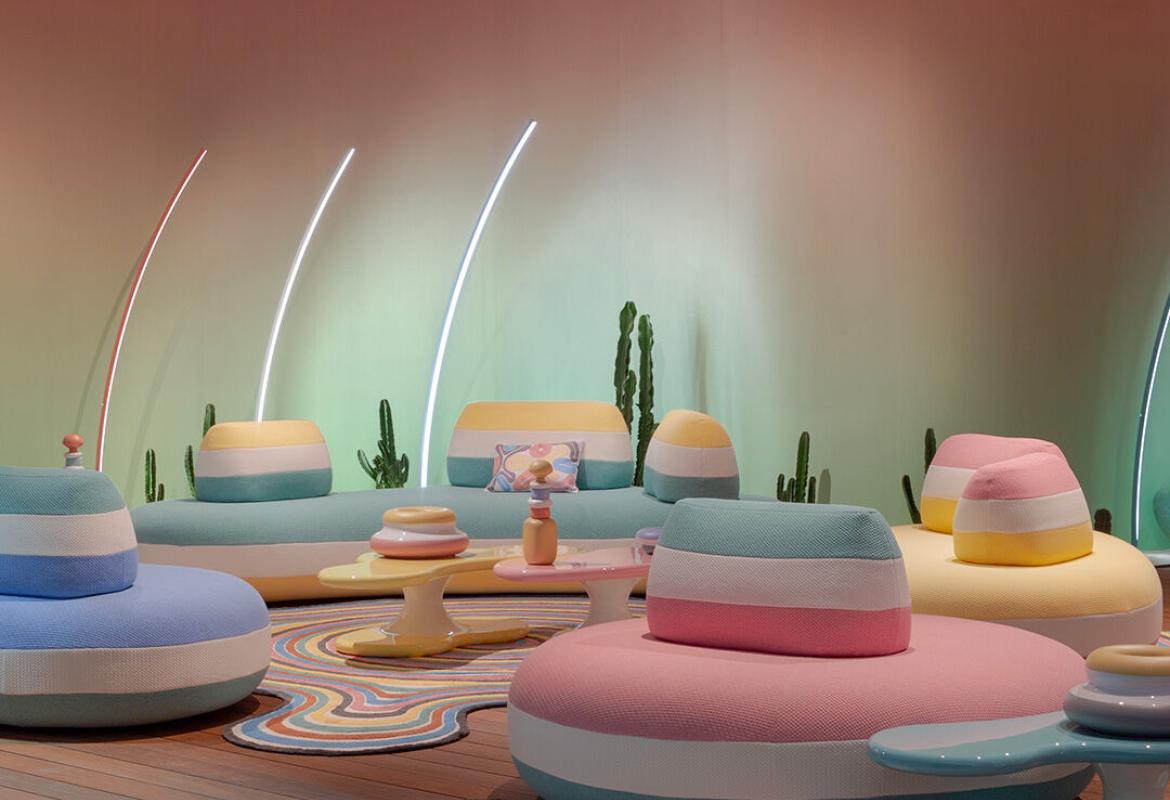 Proprio il colore diventa esplosivo e segno caratteristico di alcuni brand come nei pezzi iconici di Kartell, nel design di Qeeboo e nella nuova collezione proposta da Roche Bobois in collaborazione con la designer Joana Vasconcelos.